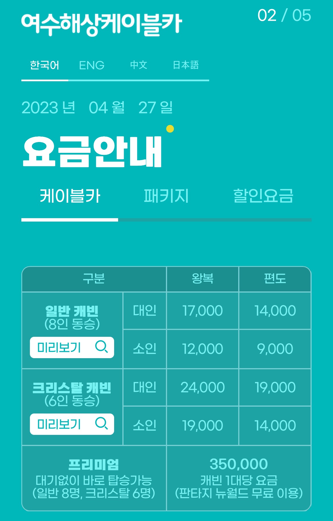 크리스탈 캐빈은 바닥이 투명하고 6인승입니다