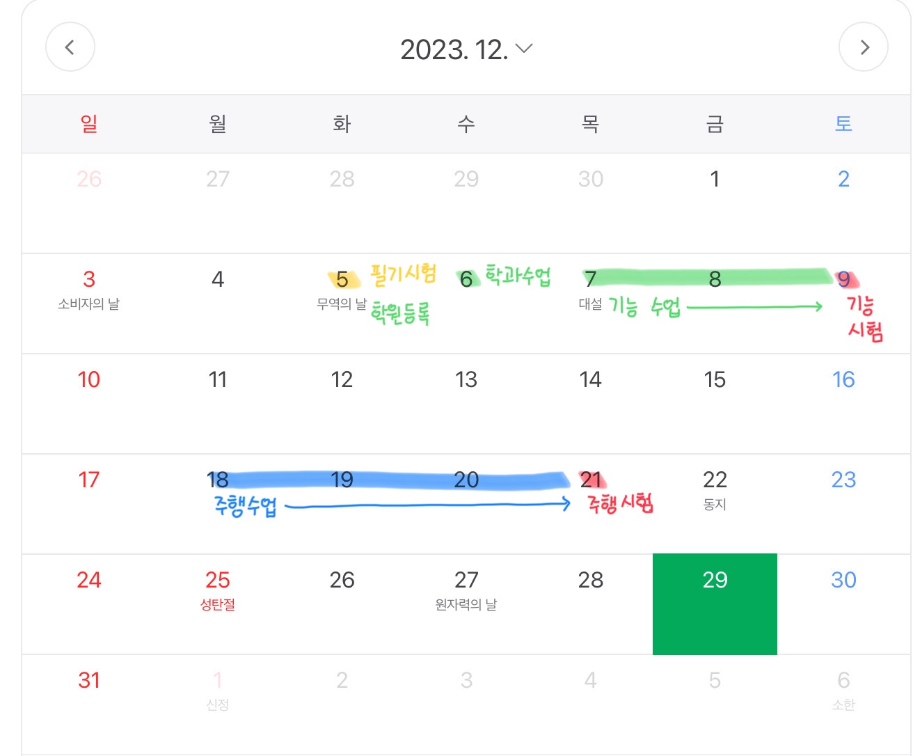 12월 5일에 필기 시험 보고 학원 등록해서 12월 21일에 2종 보통 땄습니다!